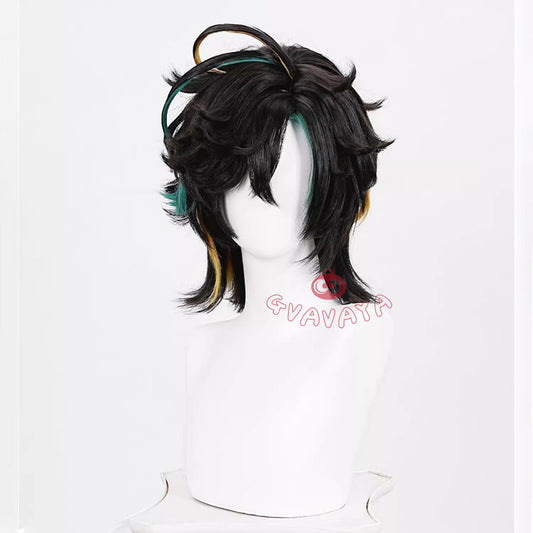 Gvavaya Game Cosplay Genshin Impact Kinich Cosplay Wig 35cm Black Yellow Green Wig