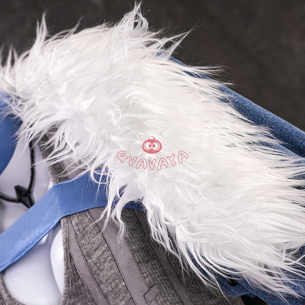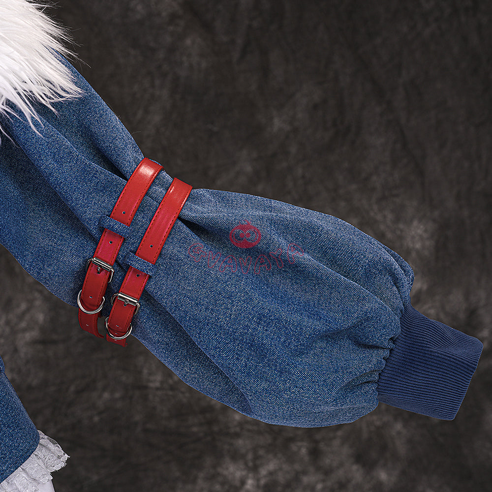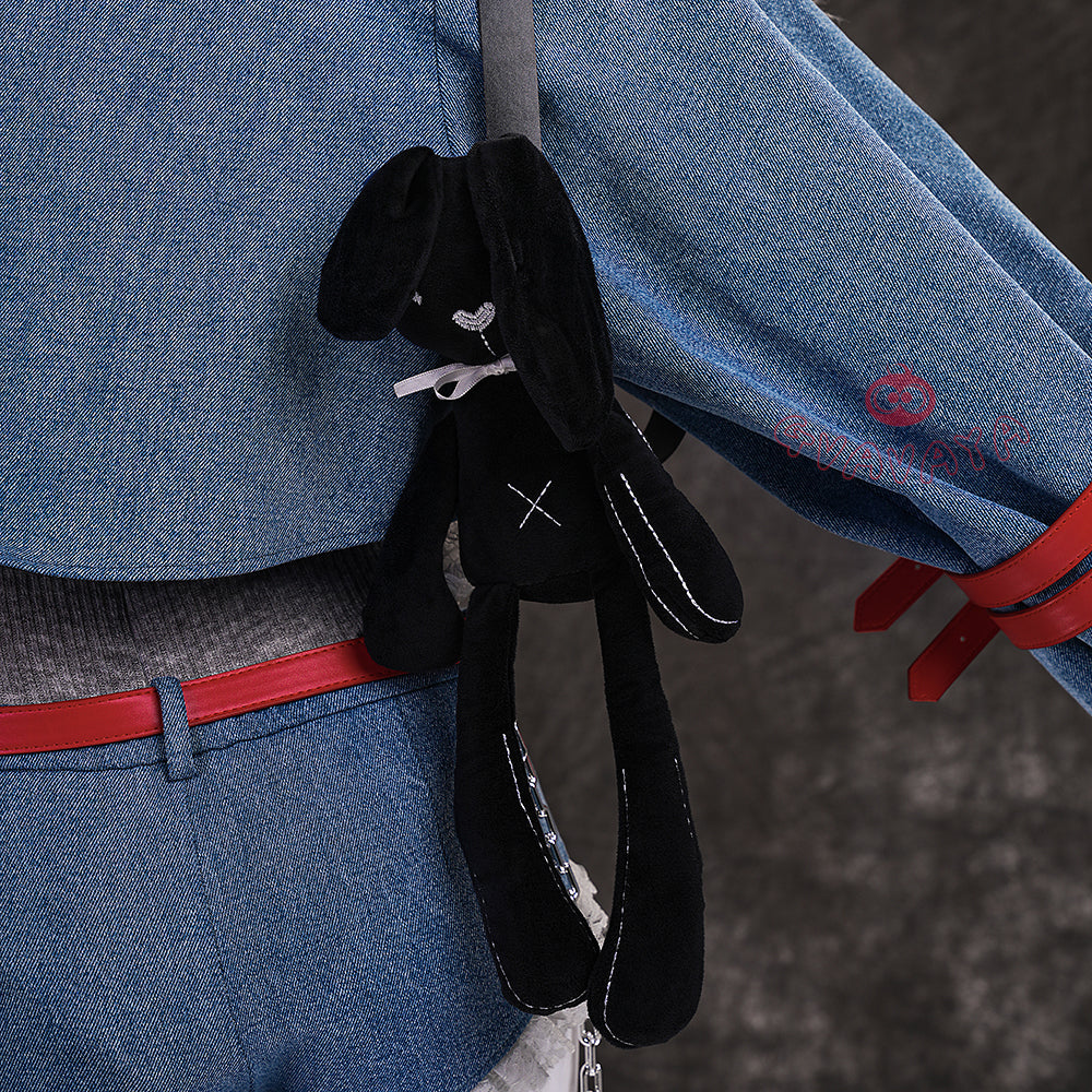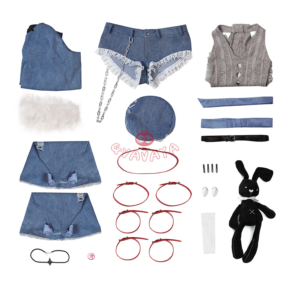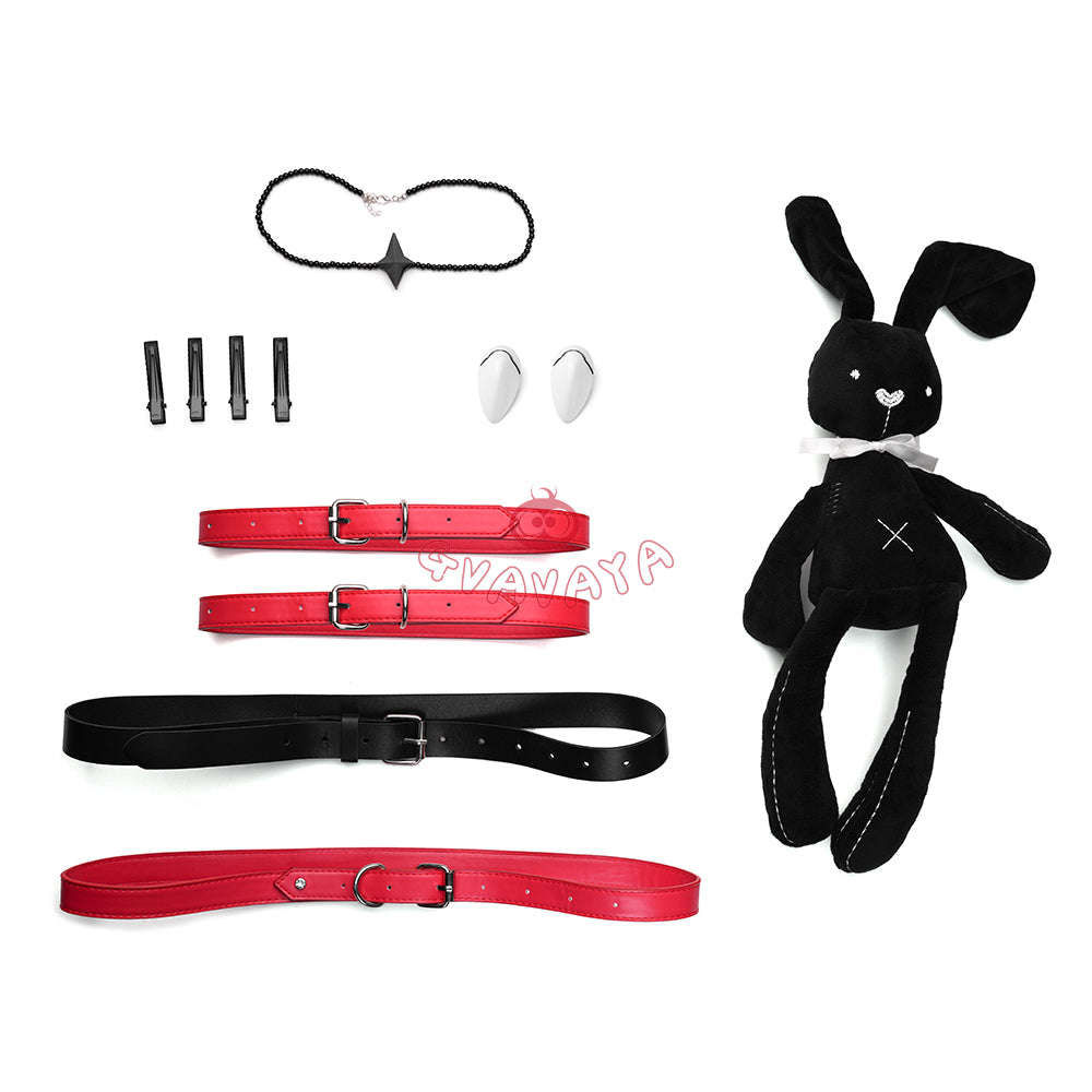 Package Include: Jacket with detachable fur collar *1,Knit halter top *1,Shorts *1,Leg warmers *2,Hat *1,Straight-leg cardigans *4,Neck scarf *1,Shoulder belt *1,Long belt *1,Short belt *6,Tights *1,Necklace *1,White card *2,Badge *1,Black belt *1,Bunny *1 (Additional purchase)