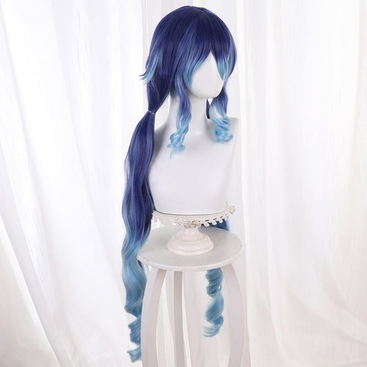 Gvavaya Game Cosplay Genshin Impact Layla Cosplay Wig 100cm Mixed Blue Gradient Hair