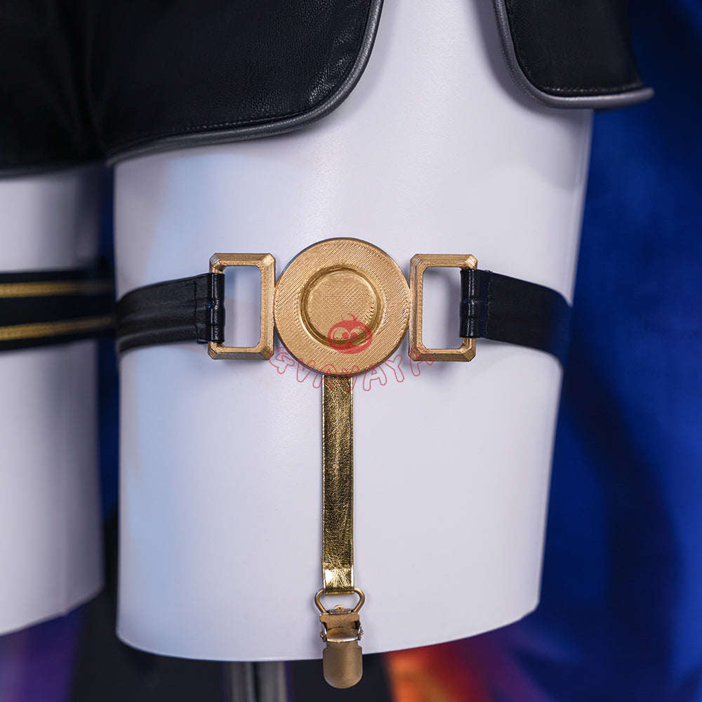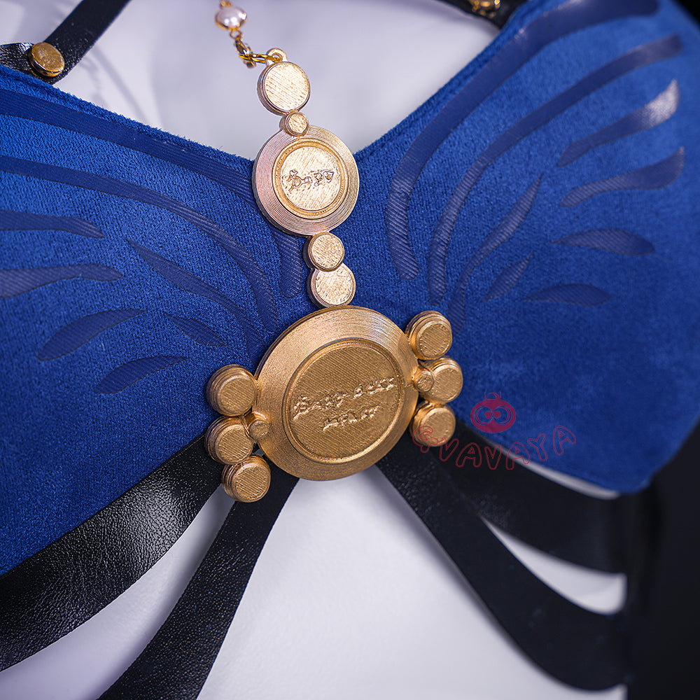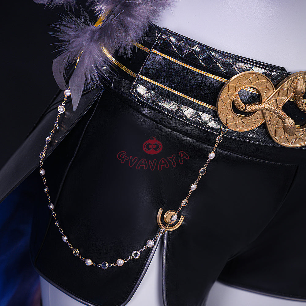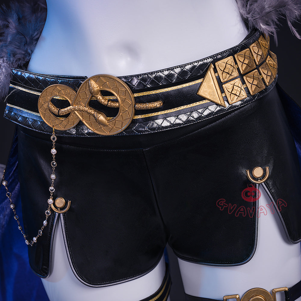 Package Include: Jacket*1,Shorts*1,Back feather strip*1,Neck ornament*1,Thigh straps*2,Belt assembly*1,Gloves*2,Bracelet*1,Back ornament*1,Arm bag assembly*1,Stockings*2,Tights*1,Chest necklace*1,Finger necklace*1