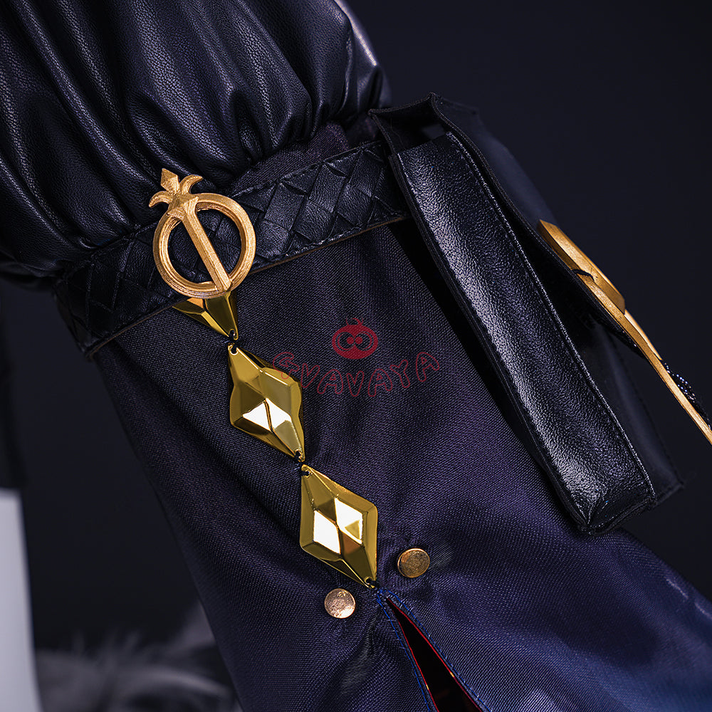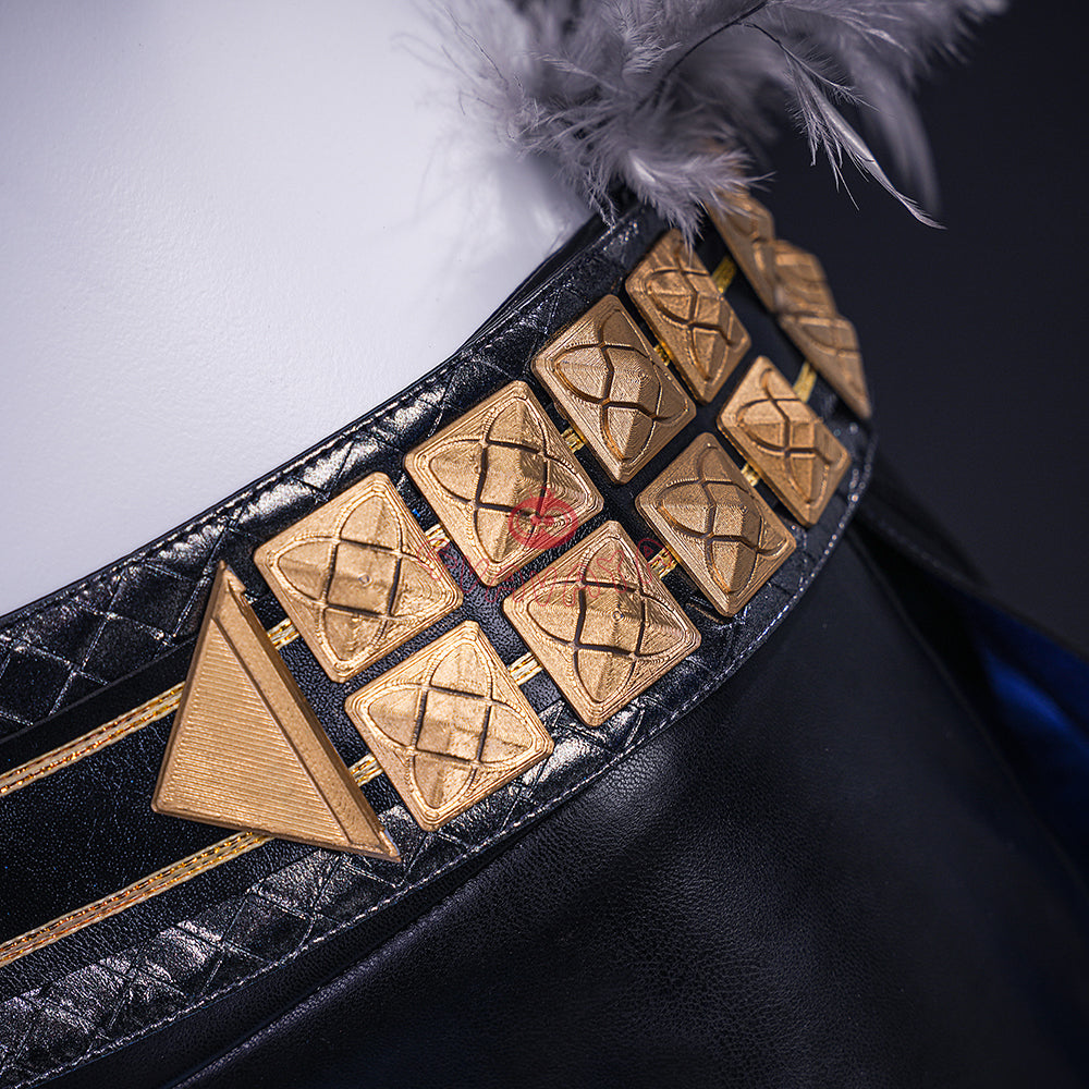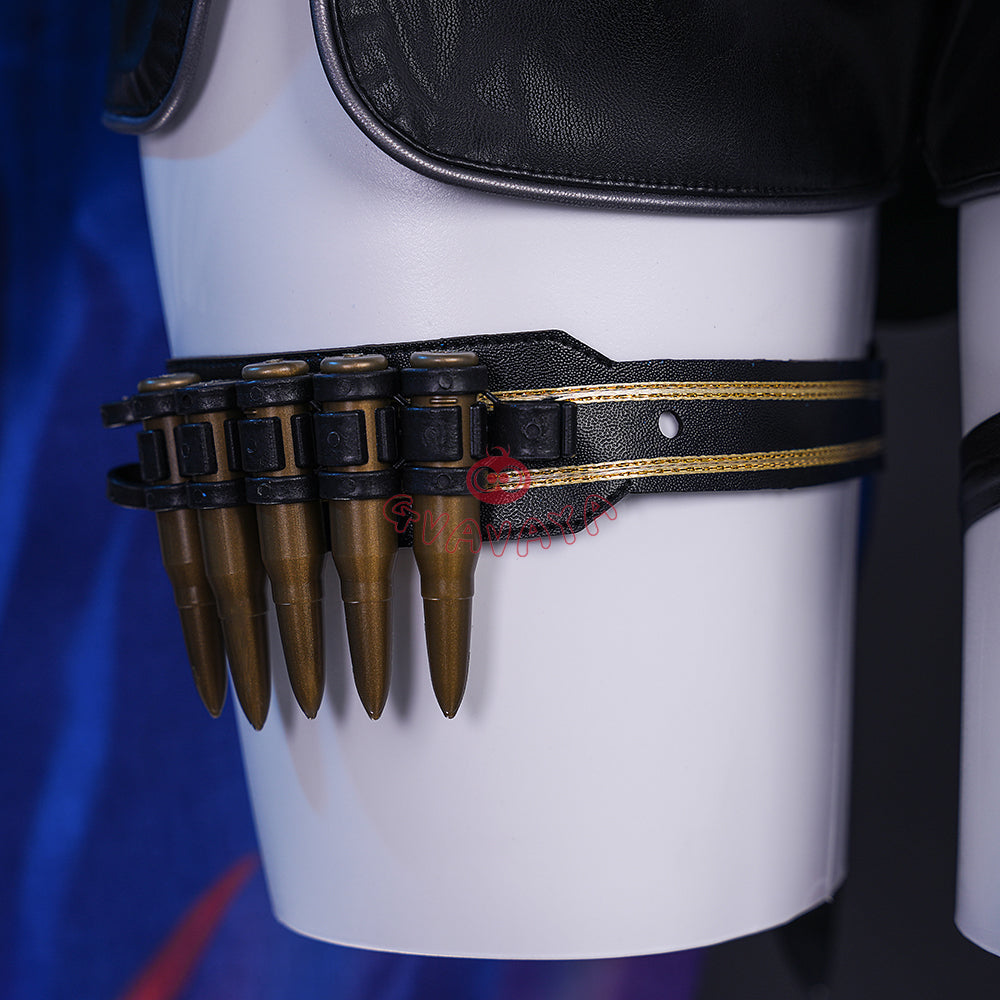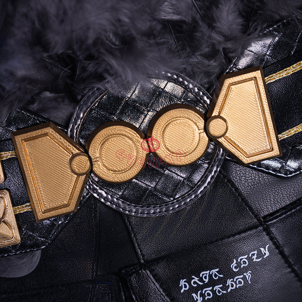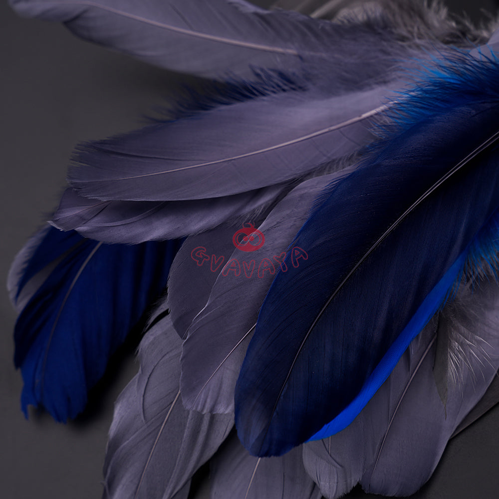 Package Include: Jacket*1,Shorts*1,Back feather strip*1,Neck ornament*1,Thigh straps*2,Belt assembly*1,Gloves*2,Bracelet*1,Back ornament*1,Arm bag assembly*1,Stockings*2,Tights*1,Chest necklace*1,Finger necklace*1