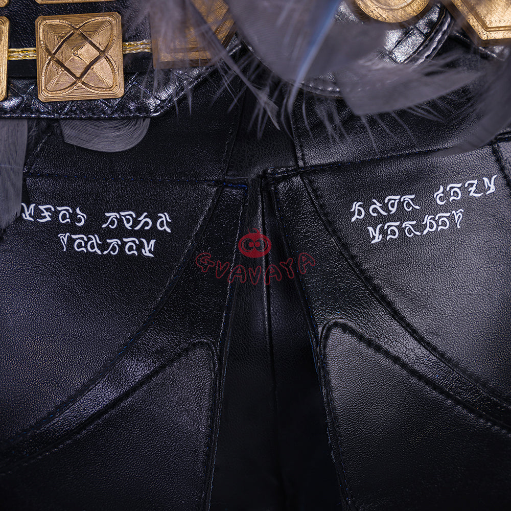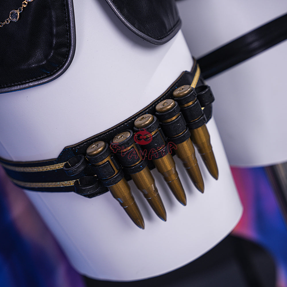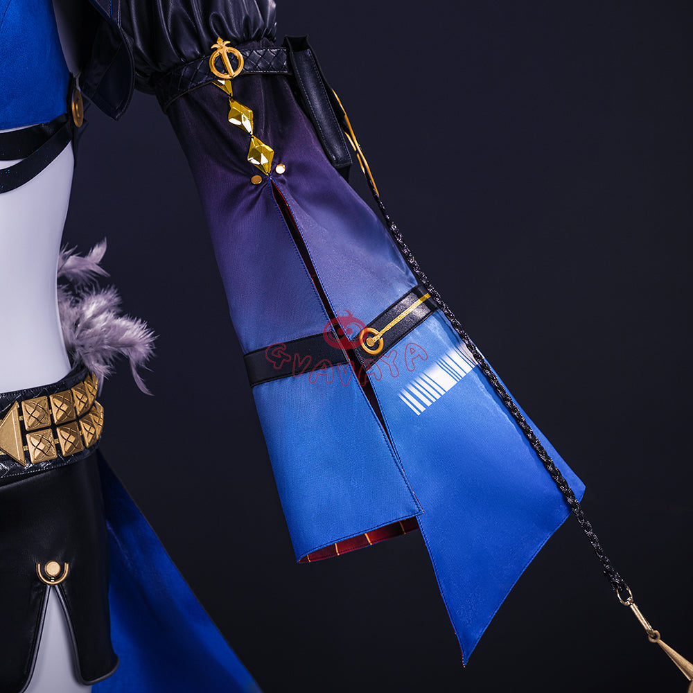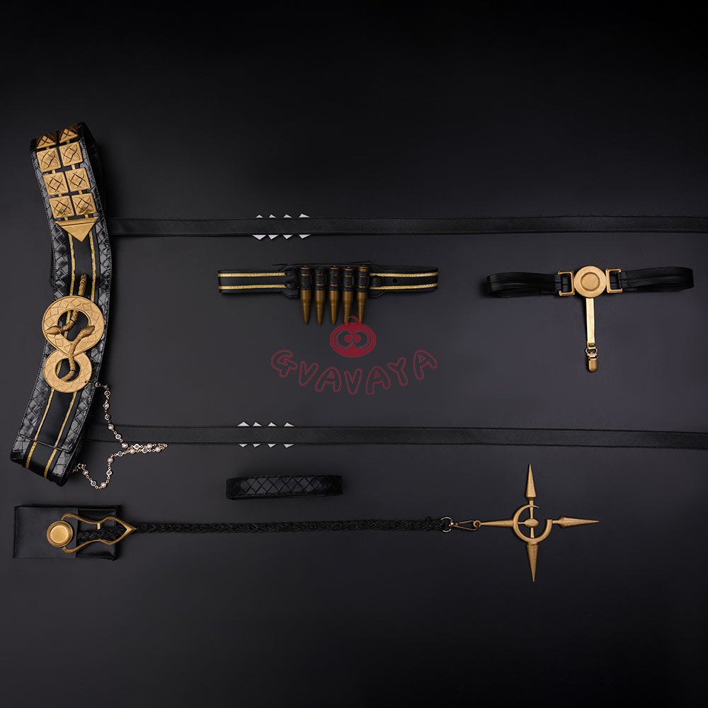Package Include: Jacket*1,Shorts*1,Back feather strip*1,Neck ornament*1,Thigh straps*2,Belt assembly*1,Gloves*2,Bracelet*1,Back ornament*1,Arm bag assembly*1,Stockings*2,Tights*1,Chest necklace*1,Finger necklace*1