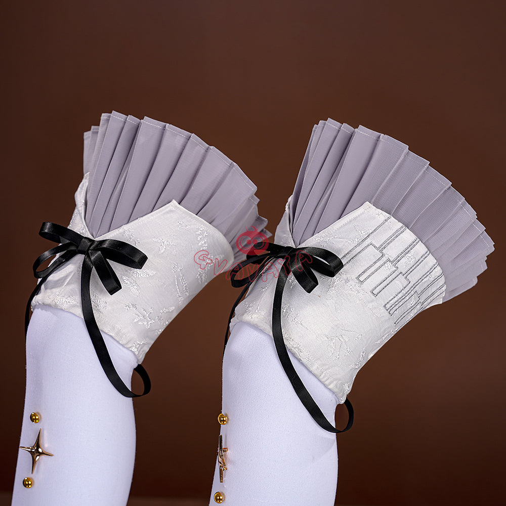 Package Include: Skirt*1,Scarf*1,Sleeves*2,Leg warmers*2,Socks*2,Headwear model*1,Hair clip*2,Chest bow*1,Back bow*1