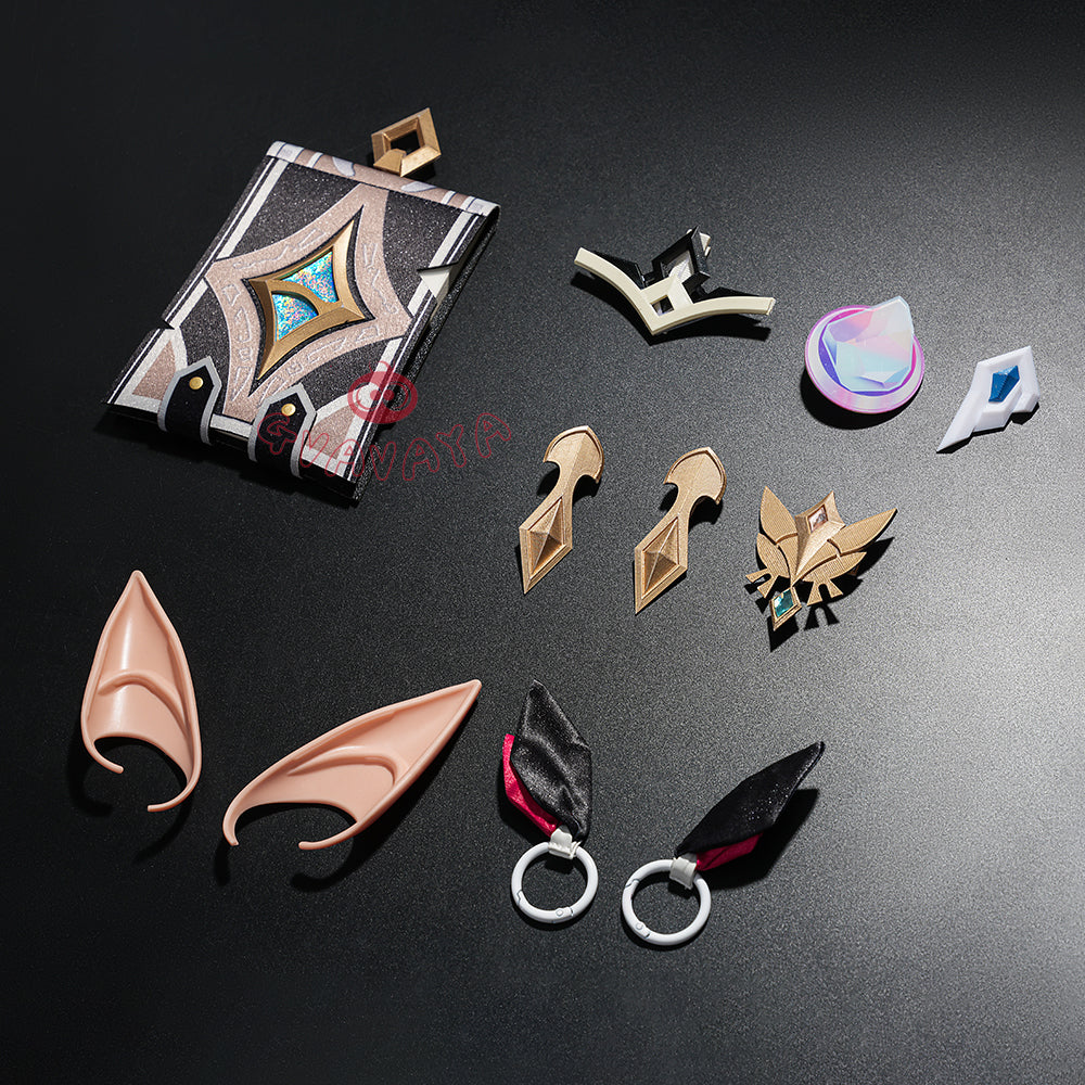Package Include:  Top *1,Skirt *1,Outer Wings *2,Inner Wings *1,Sleeves *2,Collar *1,Sleeve Accessories *4,Front Neckline Accessory *1,Book *1,Backpack Component *1,Socks *2,Shoes *2,Headwear *3,Ears *2,Tattoo Stickers *1,Safety Shorts *1,Transparent Shoulder Straps *4,Back Connector *1