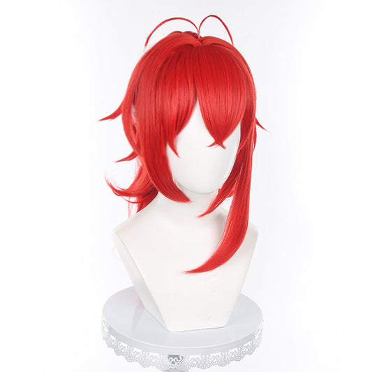 Gvavaya Game Cosplay Genshin Impact Diluc Red Dead of Night Skin Cosplay Wig Red 70cm Long Hair