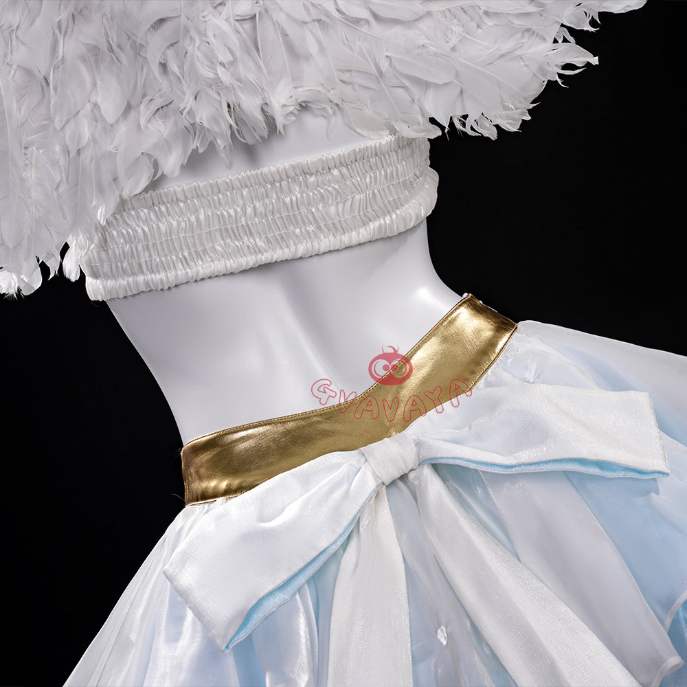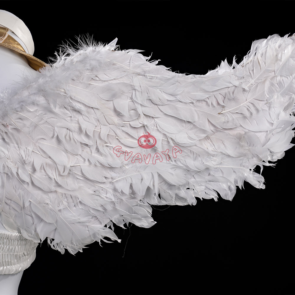 Package Include: Headwear*1, Neck Ring*1, Top*1, Upper Arm Ring*2, Lower Arm Ring*2, Gloves*2, Skirt*1, Leg Ring*2, Ankle Gloves*2, Ring*1, Ankle Wings*1, Headwear*1