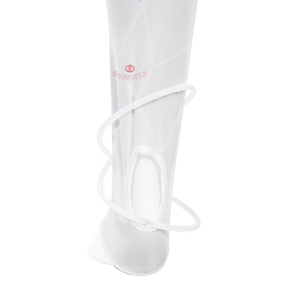 Package Include: Jumpsuit*1, Outer garment*1, Glasses prop*1, Headphone prop*1, Pantyhose*1, Bracelets*2, Ankle ring*2