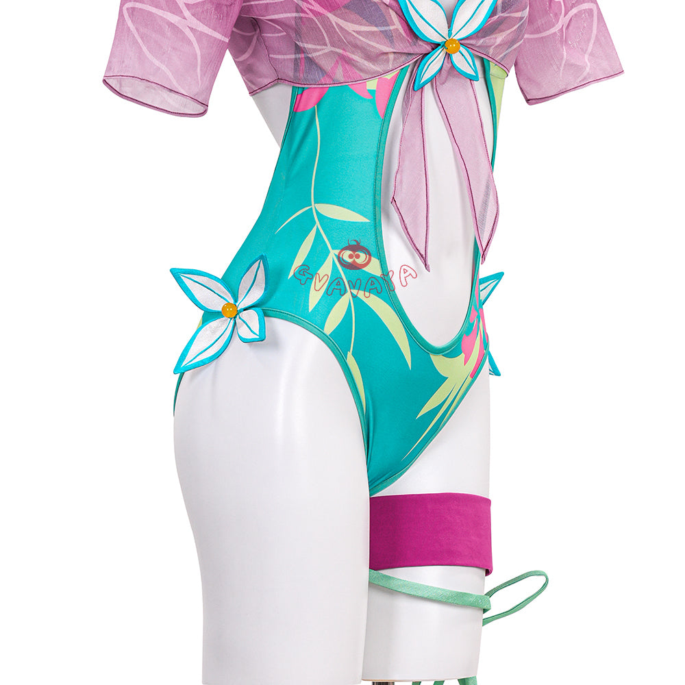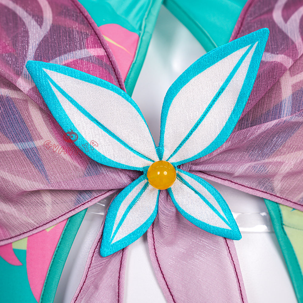 Package Include: Swimsuit*1, Outer garment*1, Butterfly decor*1, Headdress*4, Leg strap*1, Hair band*1, Bracelets*2, Ankle ring*2